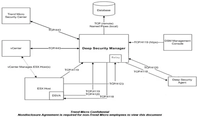 Deep Security trong quá trình hoạt động sẽ sử dụng các giao tiếp mạng như hình sau: