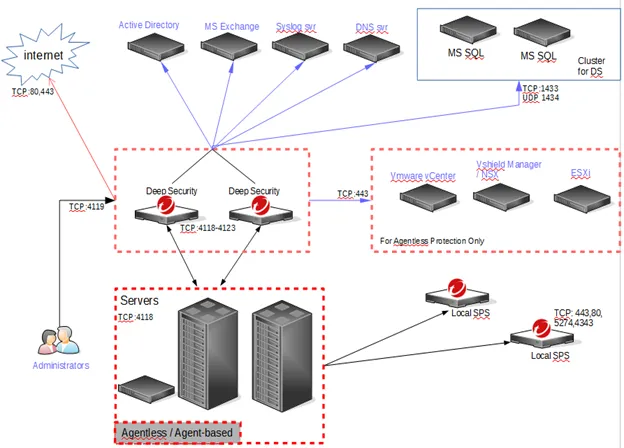 - Các server có cài thành phần Deep Security Agent (DSA) để bảo vệ đều phải được mở port 4118 để giao tiếp với Deep Security server được thông suốt