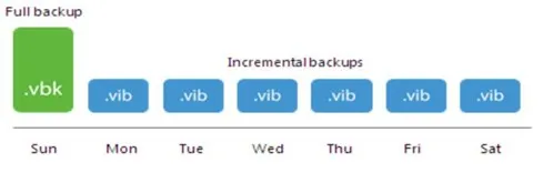 - Các lần chạy tiếp theo của backup job, Veeam chỉ lấy các block dữ liệu thay đổi từ lần backup gần nhất (có thể full hoặc incremental) và lưu vào file incremental backup (VIB) trong chain
