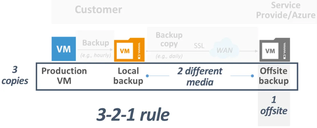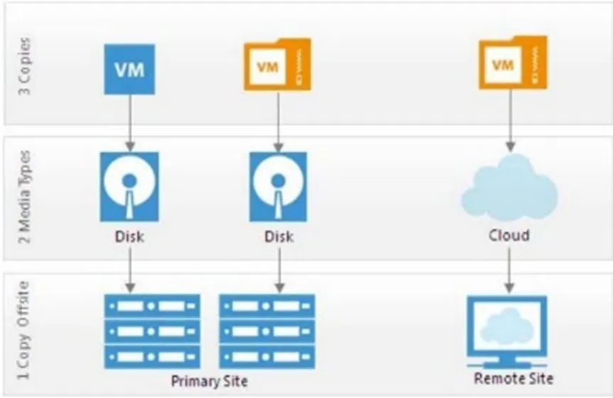 Để bảo đảm tính an toàn cho dữ liệu của hệ thống, Veeam đưa ra lời khuyên với luật 3-2-1: