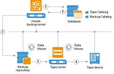 Tape là một trong những phương tiện sử dụng rộng rãi nhất trong việc backup offsite. Sử dụng backup trên tape, ta có thể thực hiện được luật ‘3-2-1’ (3 bản copy, 2 loại media, 1 bản offsite), đây được xem là phương pháp tốt nhất để bảo vệ dữ liệu và phục hồi sau thảm họa. Veeam Backup & Replication hỗ trợ các thiết bị tape, cho phép lưu dữ liệu vào tape và phục hồi khi cần thiết.