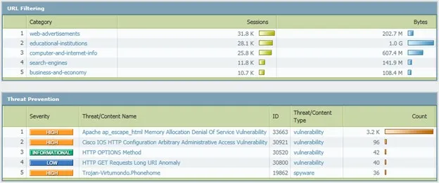 Content-ID: một engine quét dựa trên luồng dữ liệu (stream-based engine) giúp phát hiện và chặn các mối hiểm họa và giới hạn việc chuyển một cách trái phép các tập tin dữ liệu, nội dung nhạy cảm. Ngoài ra, cơ sở dữ liệu URL toàn diện kiểm soát việc lướt web không phục vụ cho công việc của nhân viên. Khả năng nhìn rõ và kiểm soát ứng dụng, cùng với khả năng ngăn ngừa các mối đe dọa nhờ vào Content-ID cho phép bộ phận IT lấy lại khả năng kiểm soát ứng dụng và các mối đe dọa.