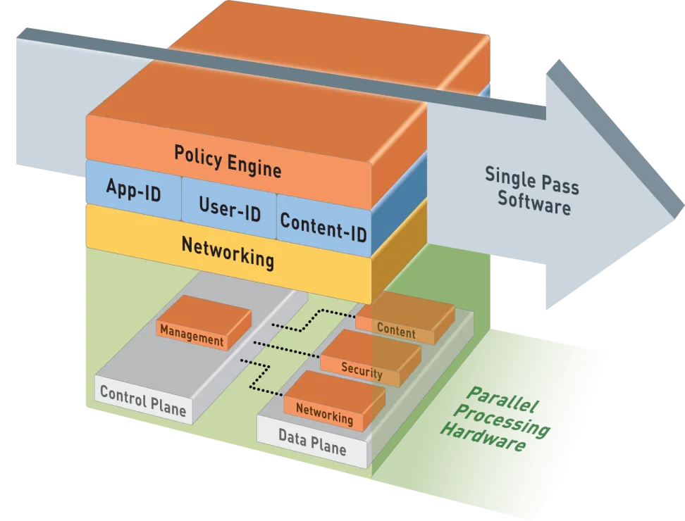 Đây là kiến trúc xử lý duy nhất được thiết kế bởi Palo Alto. Phương pháp này thực hiện scan traffic và xử lý các tác vụ chỉ một lần bao gồm: