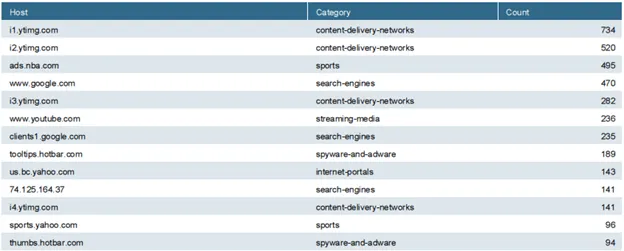 Tóm tắt hoạt động lướt web theo category cùng với bandwidth mà các ứng dụng đó đã sử dụng.